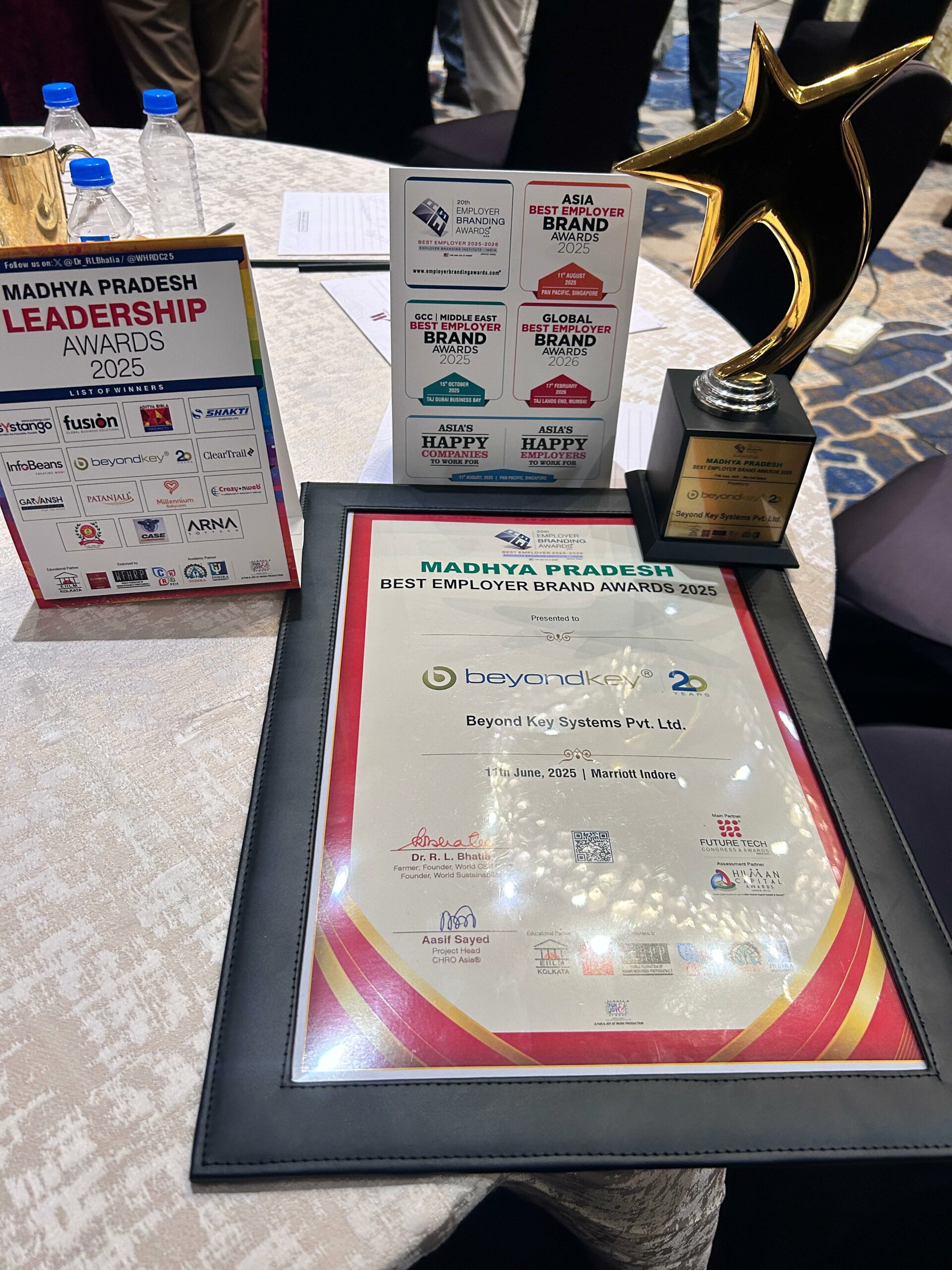 Madhya Pradesh, June 24th, 2025 – Beyond Key, a leading IT consulting and software development company, is proud to announce that it has been awarded the prestigious Madhya Pradesh Best Employer Brands Award 2025 at the World HRD Congress. The ceremony took place at the Marriott Hotel in Indore, celebrating outstanding leadership and innovation in the business and HR sectors across the state.