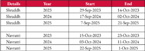 *Note: Navratri in 2025 was a 10-day celebration, due to a rare alignment of the lunar calendar with Tirthiya Tithi spanning two days, extending the festival beyond its usual nine-day duration.