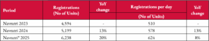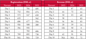 Moreover, the improvement in stamp duty collection is directly influenced by the increased number of registrations. Total revenue collections, primarily driven by increased registrations volume, saw a 17% increase, with total revenue collection of INR 587 crores in the 10-days of Navratri compared to the INR 502 crores collected in Navratri 2024. Daily revenue collection also exhibited growth, rising from INR 56 crores to INR 59 crores per day during Navratri 2025