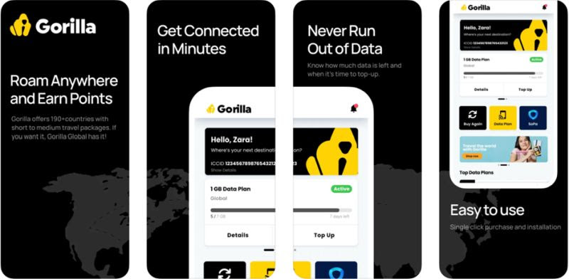 1) Gorilla Local e-SIM enables users to acquire a temporary local phone number while traveling, make phone calls, receive SMS, OTPs and other data through conventional 4G/5G network. Features include: